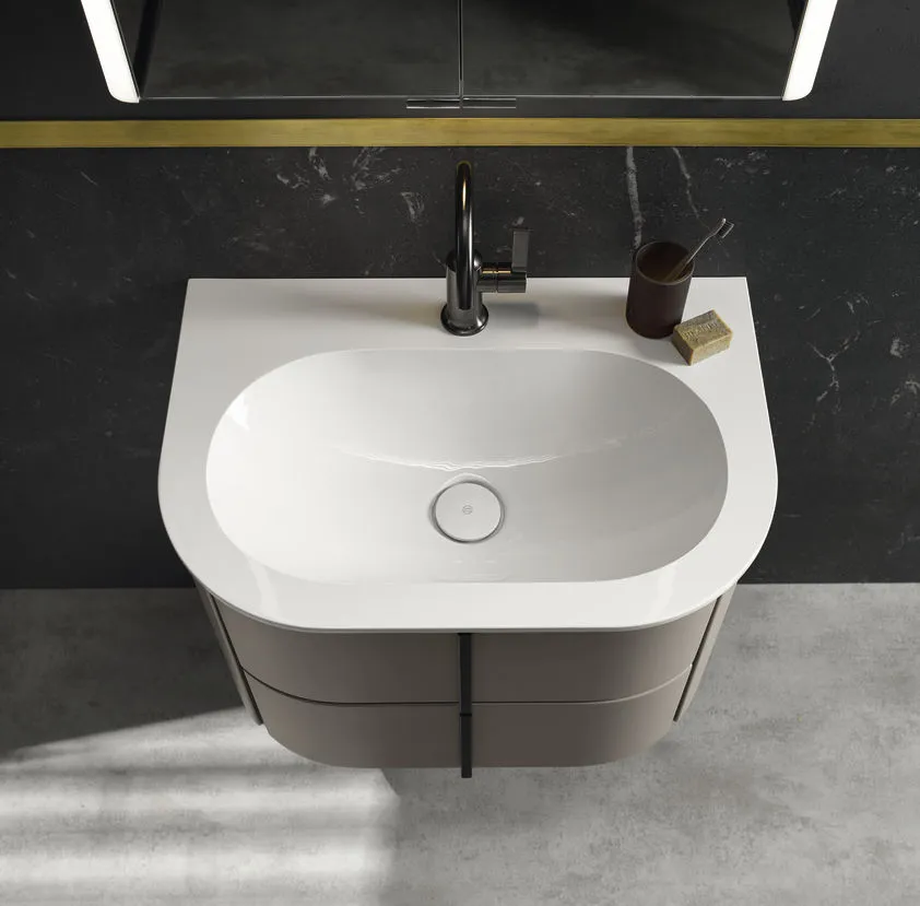 Gästebäder sind in der Regel kleiner als Hauptbäder. Ein kompakter Waschtisch, der dennoch genügend Funktionalität bietet, maximiert den verfügbaren Platz und sorgt dafür, dass der Raum nicht überfüllt wirkt.