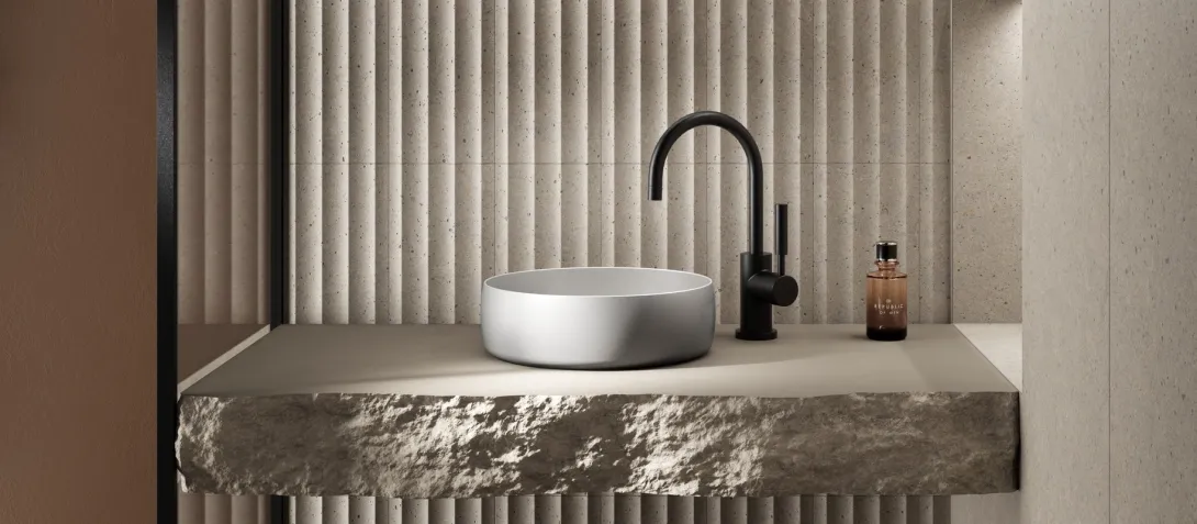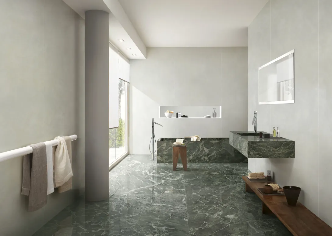 Badezimmer mit Fliesen von Marazzi im Zement-Stil.