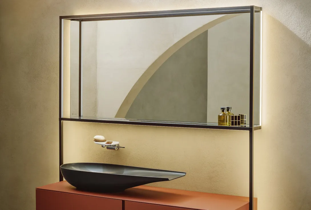 Die Möglichkeiten Spiegel und Licht reizvoll einzusetzen, reichen von der indirekten Beleuchtung hinter dem Wandspiegel bis zum gezielten Lichtelement an Wand oder Decke. Es kann funktional eingesetzt werden, wie z.B. beim morgendlichen Zurechtmachen am Waschplatz. Es kann aber auch gestalterisch genutzt werden, um Akzente zu setzen oder Räume optisch größer wirken zu lassen.