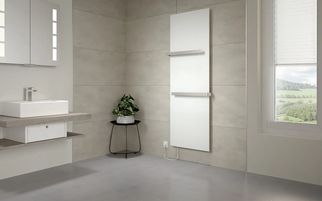 Die Meisterwerke unter den Badheizkörpern sind nicht nur durchgestylte Designerstücke – sie haben auch funktional einiges zu bieten. So verfügen Heizkörper für den Mischbetrieb neben dem Anschluss an die Heizungsanlage auch über eine Elektro-Heizpatrone. Besonders in kühlen Übergangszeiten – wenn die Heizung Sommerpause macht – kommt das Bad damit schnell auf Wohlfühltemperatur und man darf sich auf ein vorgewärmtes Handtuch freuen.