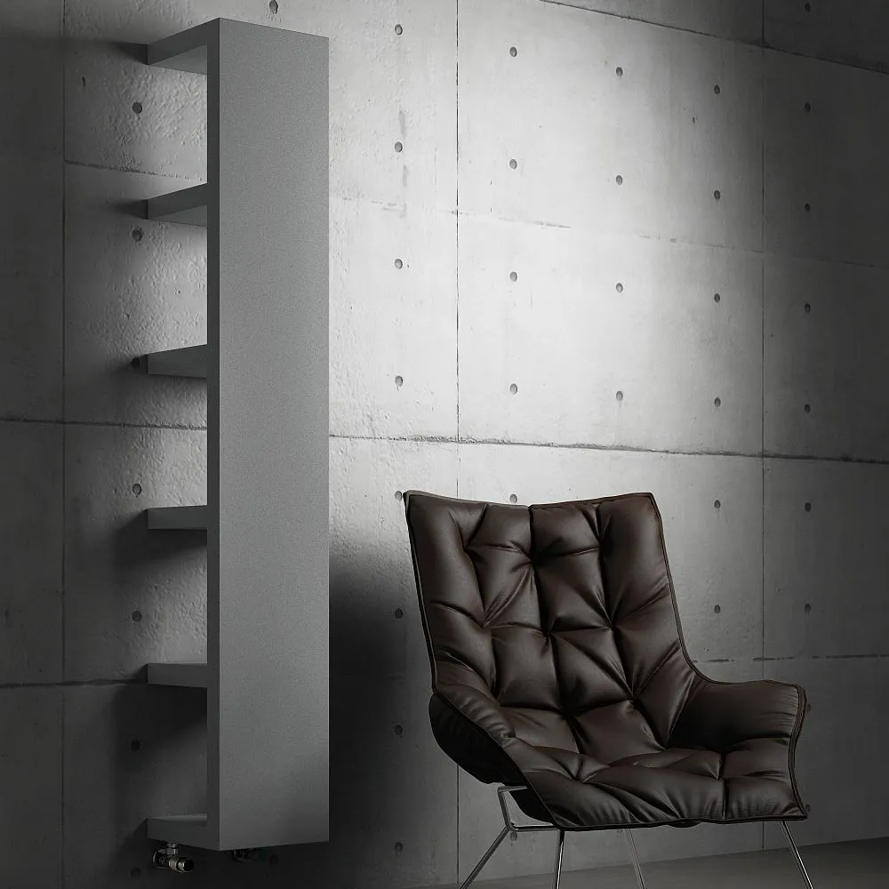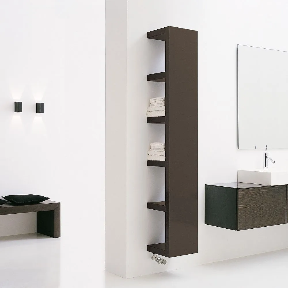 Der leistungsstarke Quadraqua von BEMM ist weit mehr als eine dekorative Wärmequelle. Er ist eine Kombination aus Möbel und Heizkörper. Seine groß proportionierten Fächer sind als Regal nutzbar und eignen sich perfekt, um Handtücher vorzuwärmen.