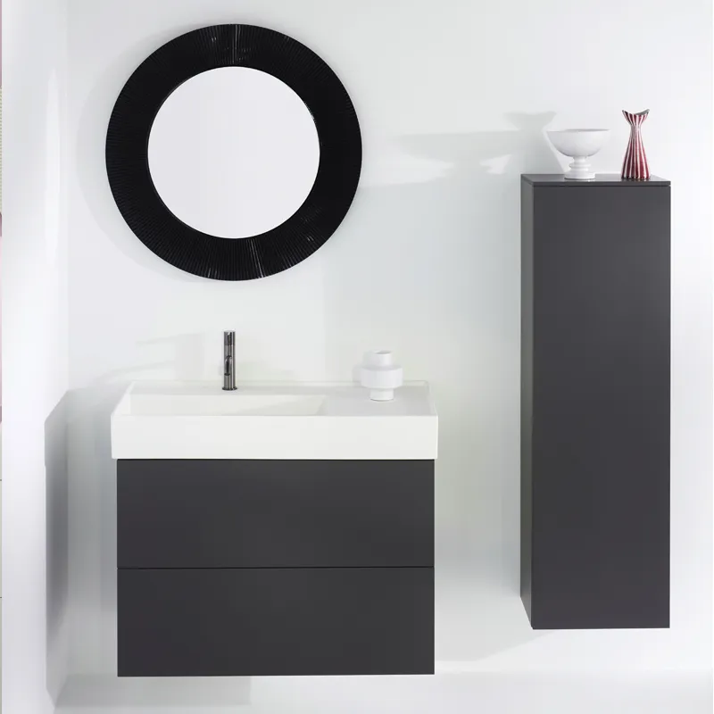 Die Waschtischunterschränke wie auch die Hochschränke und Seitenelemente ermöglichen eine optimale Nutzung des Badezimmers. Die Volumina von Keramiken und Möbeln werden harmonisch ausbalanciert.
