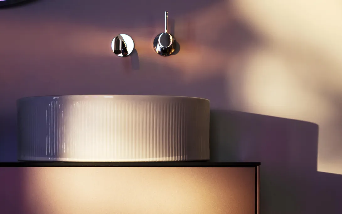 Charakteristisch für die Kollektion Sonar sind die Waschbecken in D-Form mit dreidimensionalen Außenseiten.