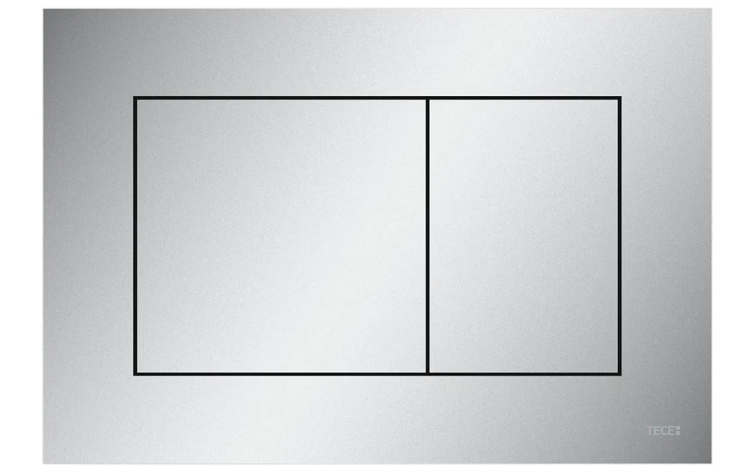 Die Optik der TECEnow-Serie wird von großzügigen Tasten in einem flachen Rahmen bestimmt. Mit lediglich 6 mm präsentiert sich die Betätigungsplatte extraflach und mit klarer Wirkung. Ein separat bestellbarer Montagerahmen ermöglicht außerdem eine flächenbündige Montage.