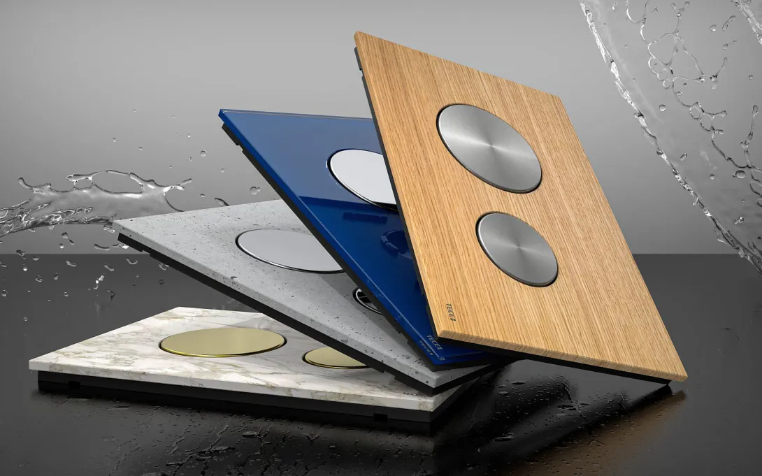 TECE-Betätigungsplatten bieten eine große Vielfalt an Materialien wie Kunststoff, Edelstahl, Echtglas oder Schiefer. Sie sind in verschiedenen Designs erhältlich, von klassisch bis minimalistisch, flach oder flächenbündig. Steuerungen reichen von Tastendruck bis hin zu Sensoren, sodass für jedes Ambiente die passende Lösung vorhanden ist.